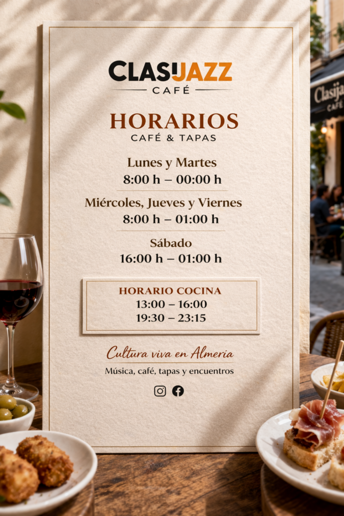 En el corazón de nuestra sede en Almería se encuentra la Cafetería de Clasijazz, un espacio abierto a todo el público donde disfrutar de una oferta gastronómica variada y de calidad.